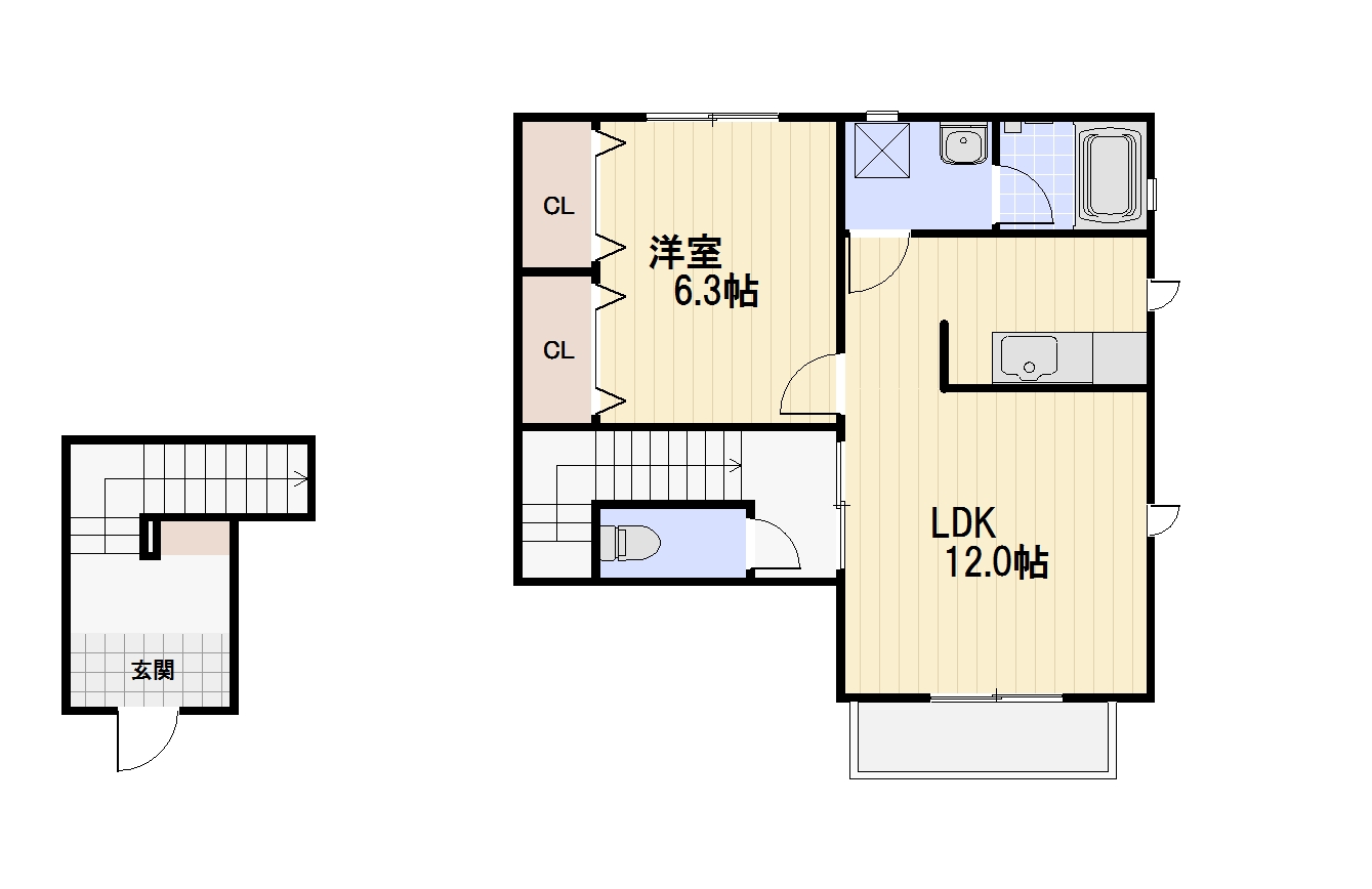 | 間取詳細 | 1LDK(洋6.3、LDK12) | 方位 | 南向き |